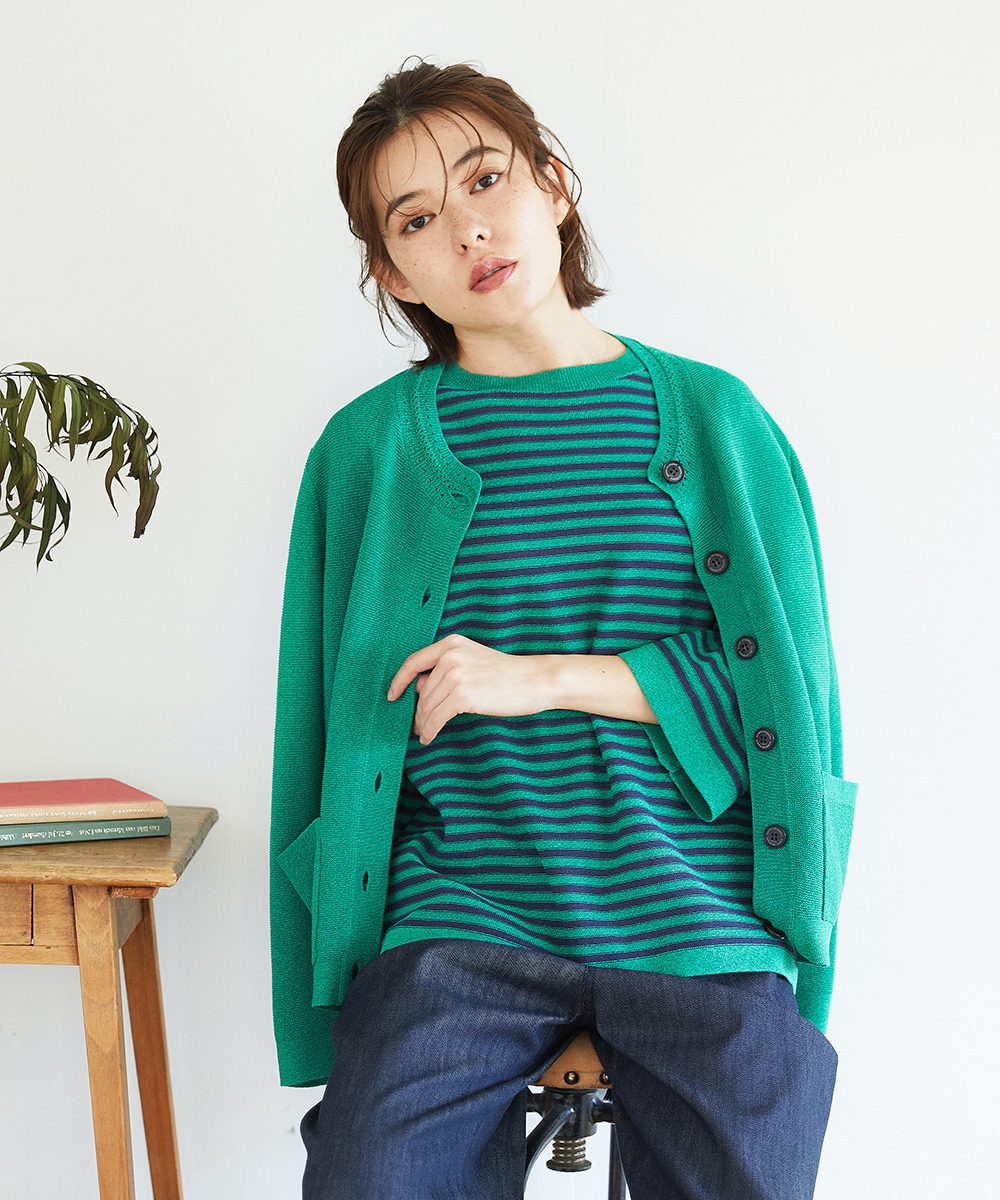 ふんわりしたカーディガンは、一枚着でも羽織でも使えて これからの季節に便利です。