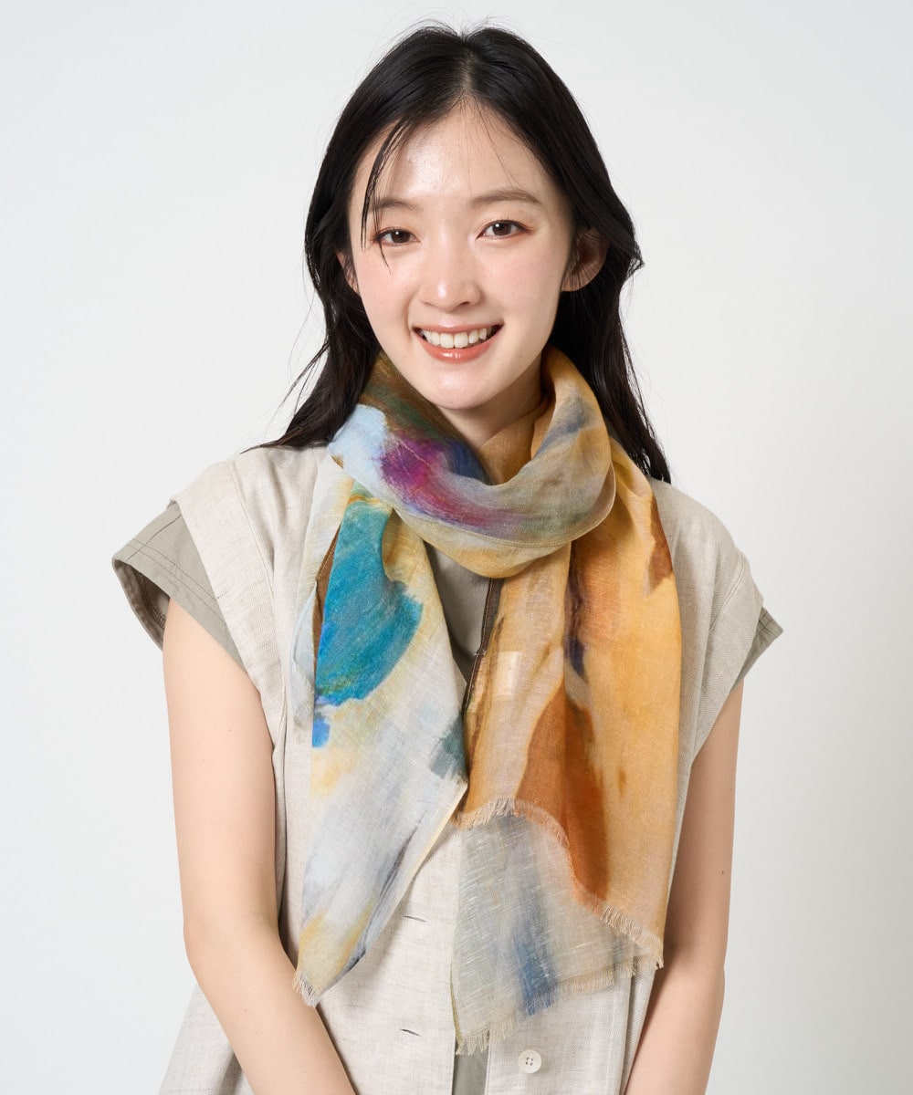 麻素材の涼感スカートはウエスト総ゴム仕様で、タック入りのふんわりシルエットが軽やかさをプラス。美しい発色としっかりした麻の風合いが、季節感と快適さを両立しています。