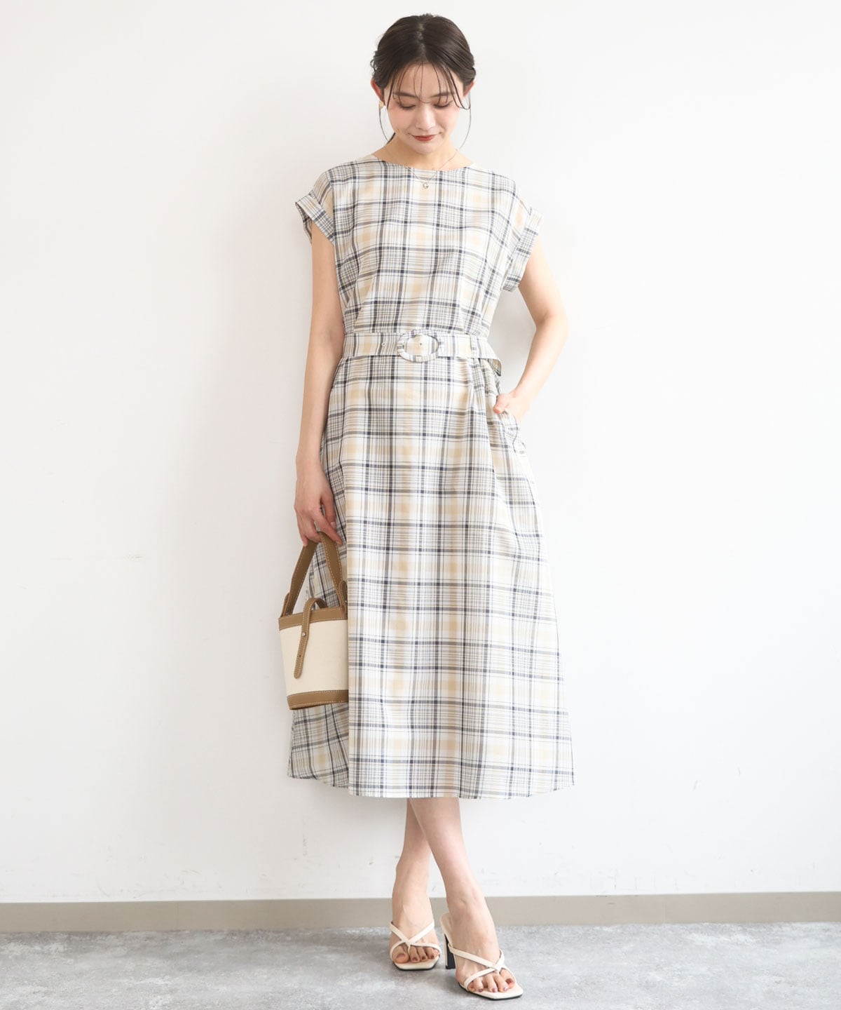 オーガンジーチェック柄ワンピースは、チェック柄が映えるデザインで着映え抜群です。