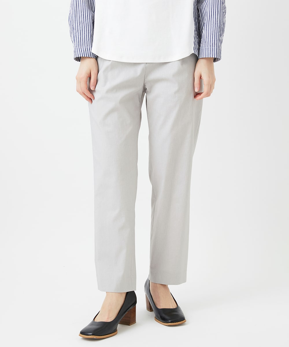 コットンリネンテーパードパンツは、ストレッチ性のある素材で美しいシルエットを演出。