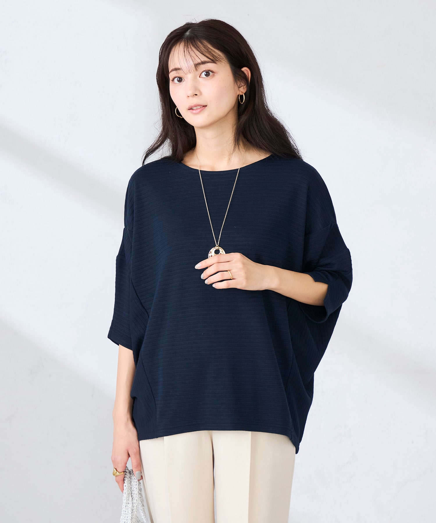 こなれたフォルムでトップスインもアウトもサマになる着こなしを叶えます