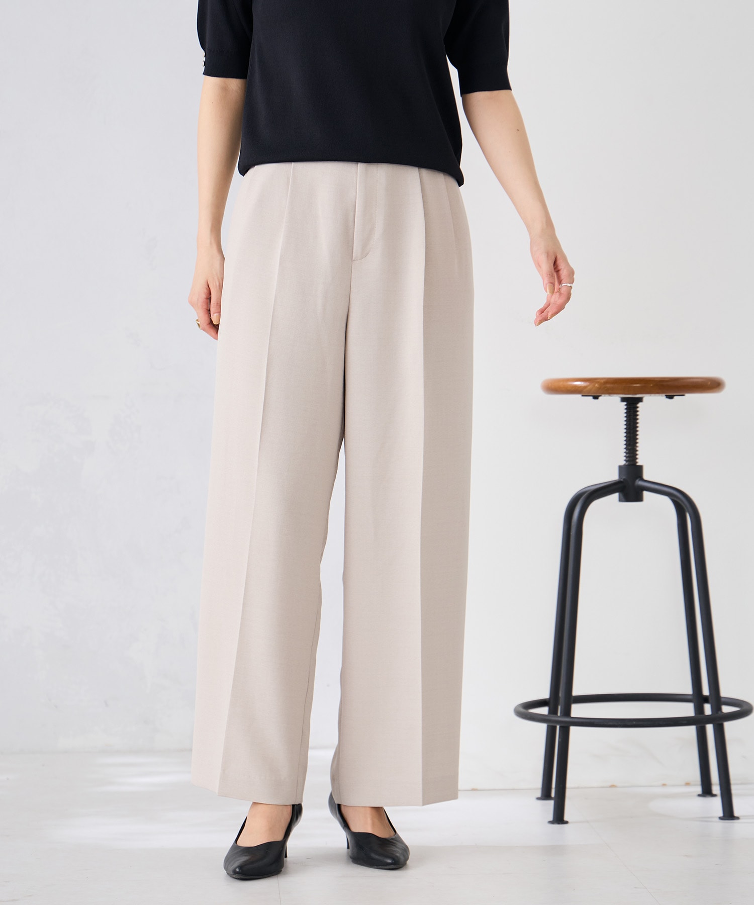 程良く浅めの2タックが綺麗に入った大人ワイドパンツです