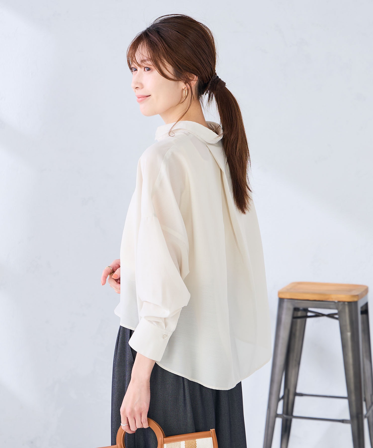 程よいシアー感が軽やかな、ドルマン風シルエットのショート丈シャツです
