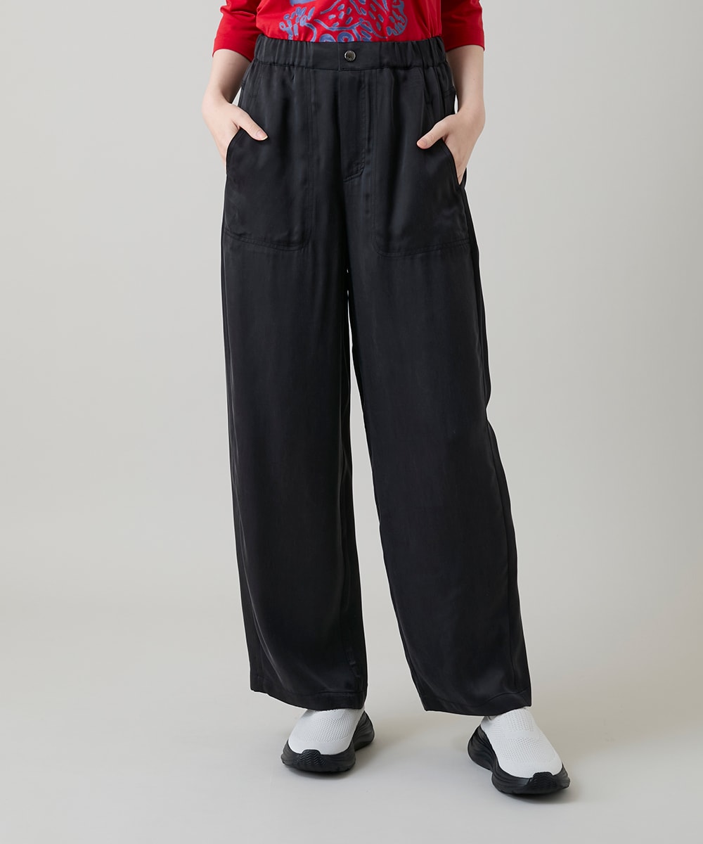 同素材のパンツはウエストがゴム使用、シルエットがとても綺麗で軽くて涼しいです。