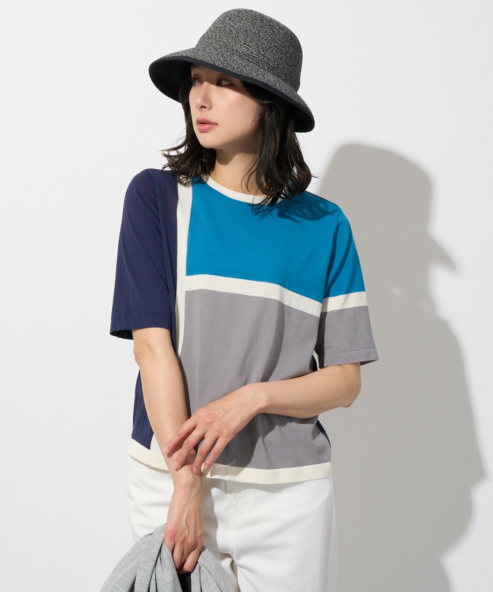 ジャケット、ニットは38サイズ着用(ワンサイズ)パンツは40サイズを着用しています。
