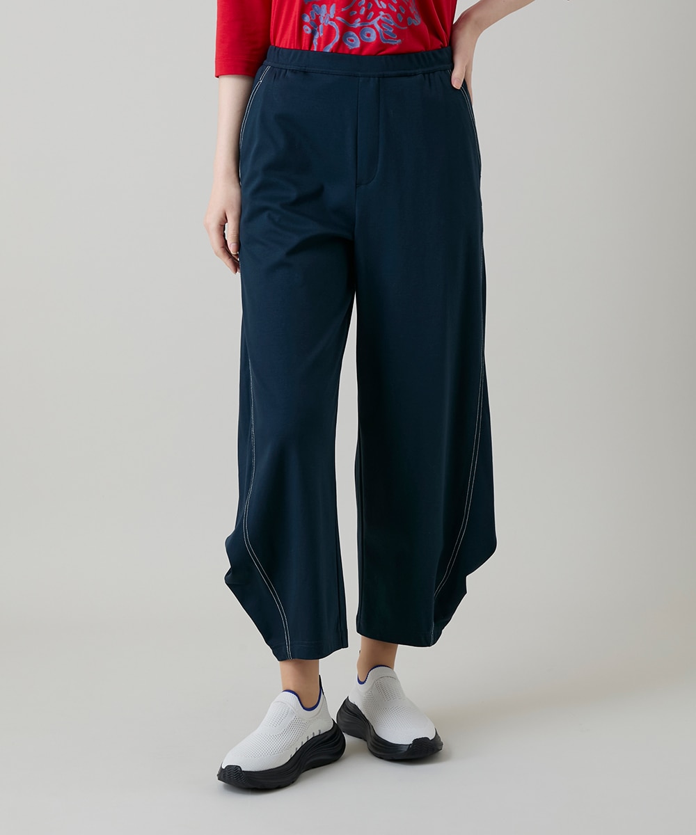 パンツはウエストゴムで、裾のタックがボリューム感がポイント。