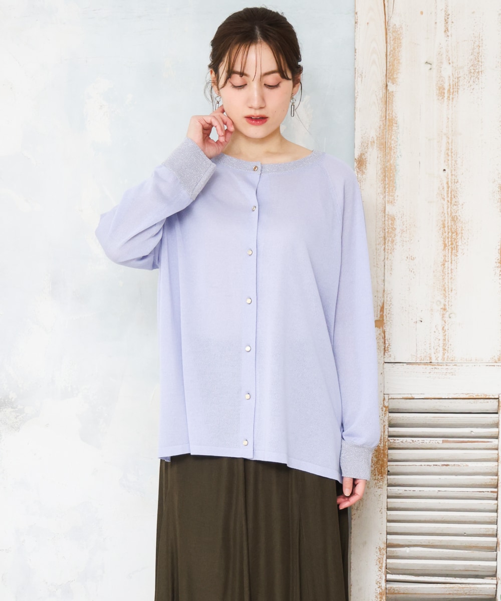 ▼クルーネックラメカーディガン
