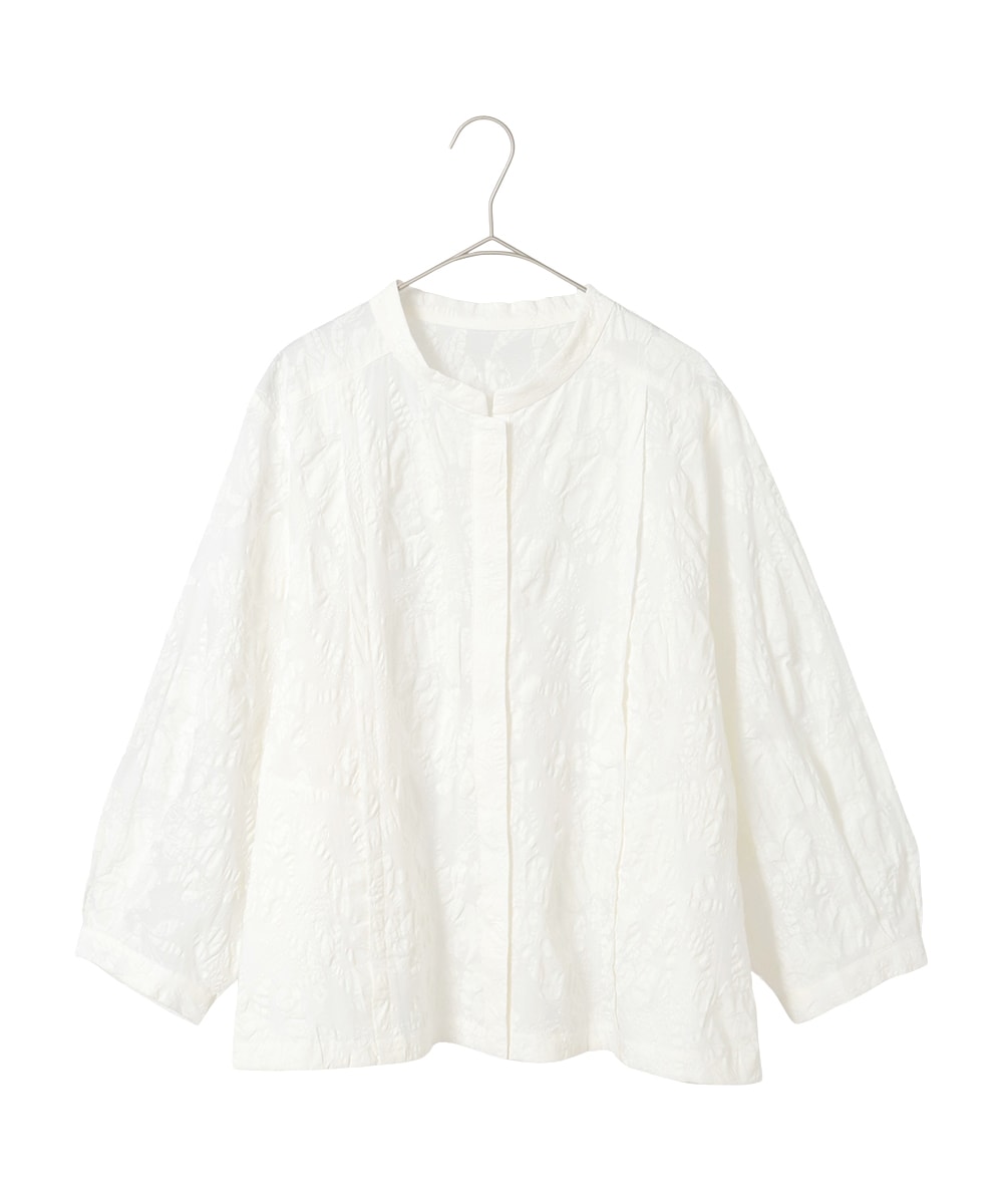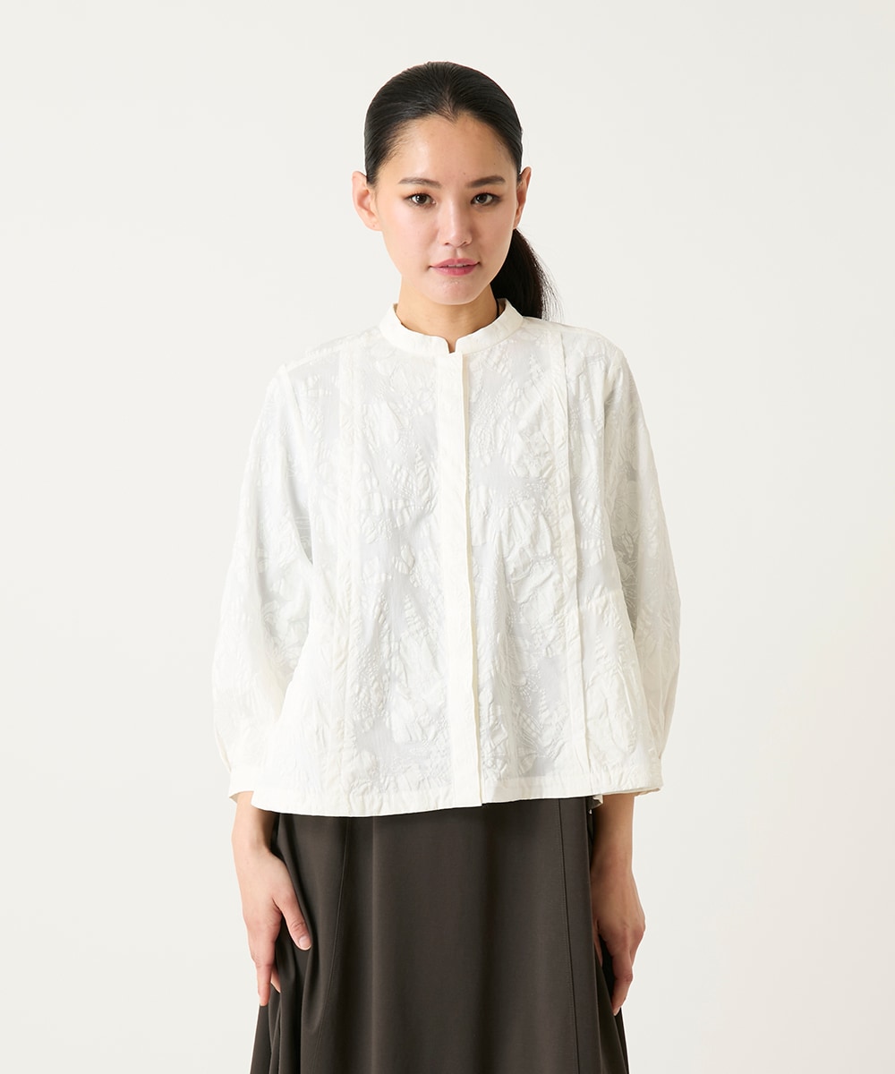 ボタニカルモチーフがかわいいトップスはコットン100%で柔らかな着心地