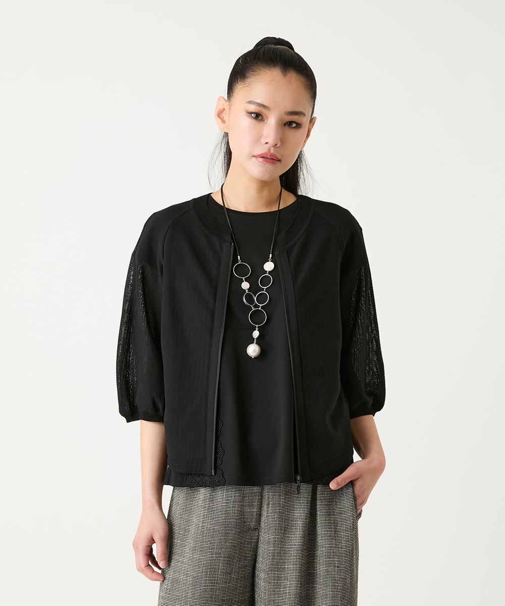 ネックレスはメタルスクエアがモードなデザイン。長さ調節もできるのでスタイルに合わせてアレンジでき、コーディネートのアクセントになります😊