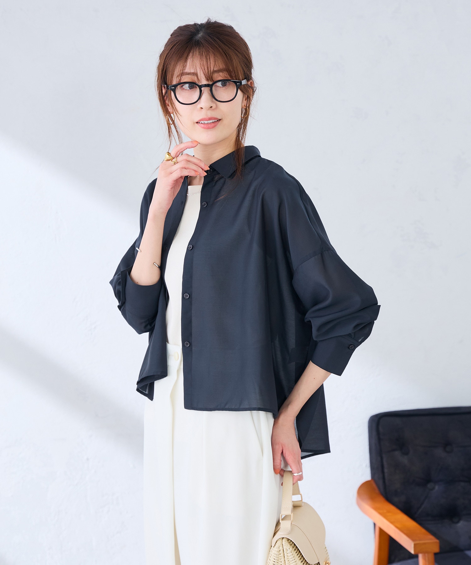 程よいシアー感で軽やかに着回せる、ドルマン風シルエットのショート丈シャツです!