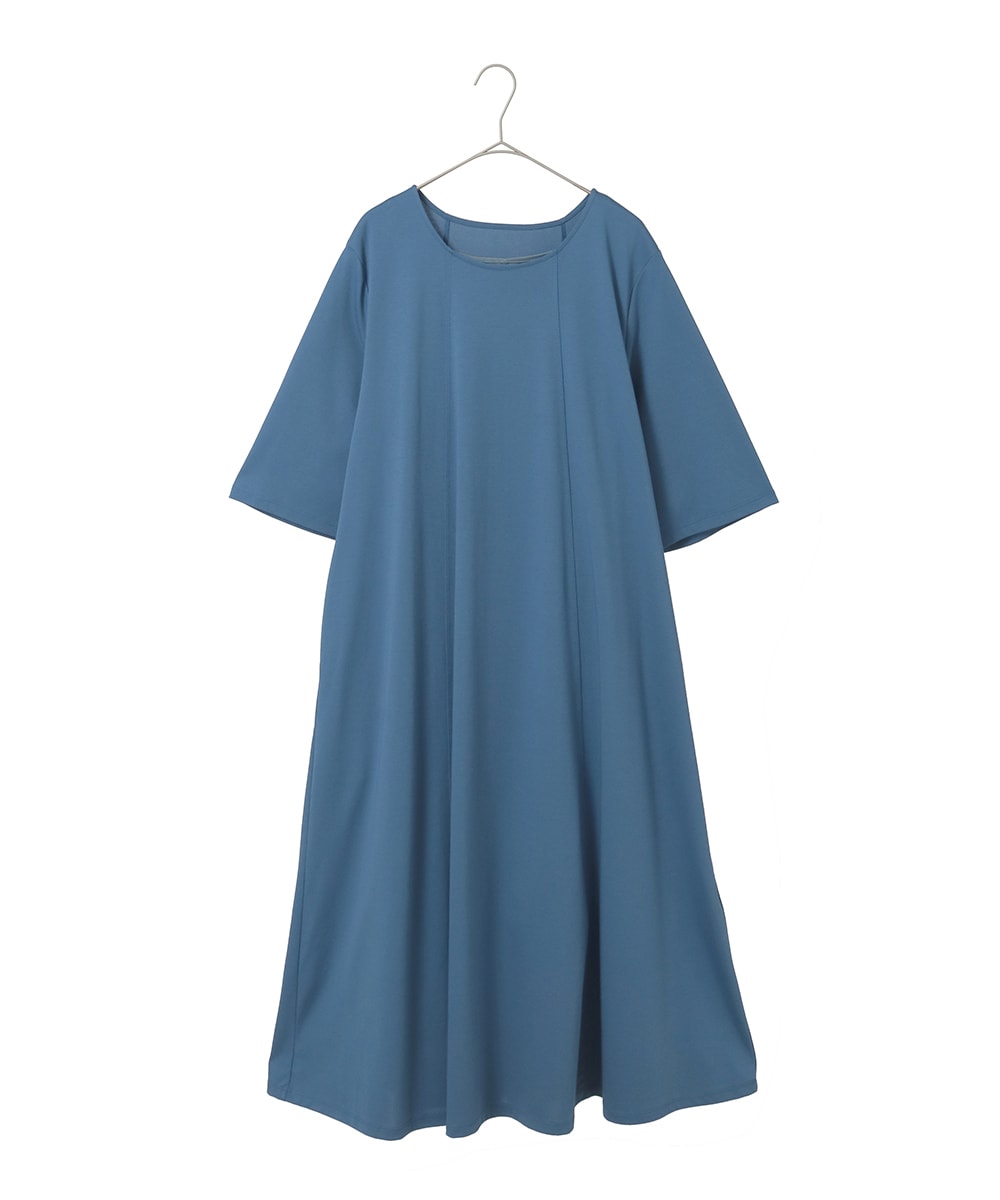 ポリエステル、コットン混合のジャージーポンチ素材のワンピース。