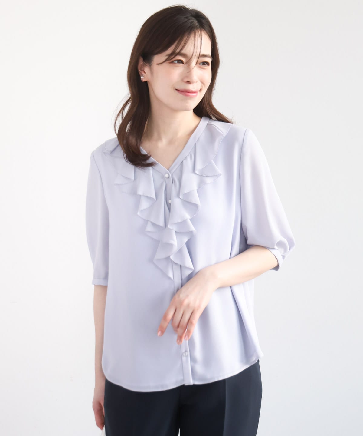 ジョーゼットVネックフリルブラウス/洗える/WEB限定サイズあり