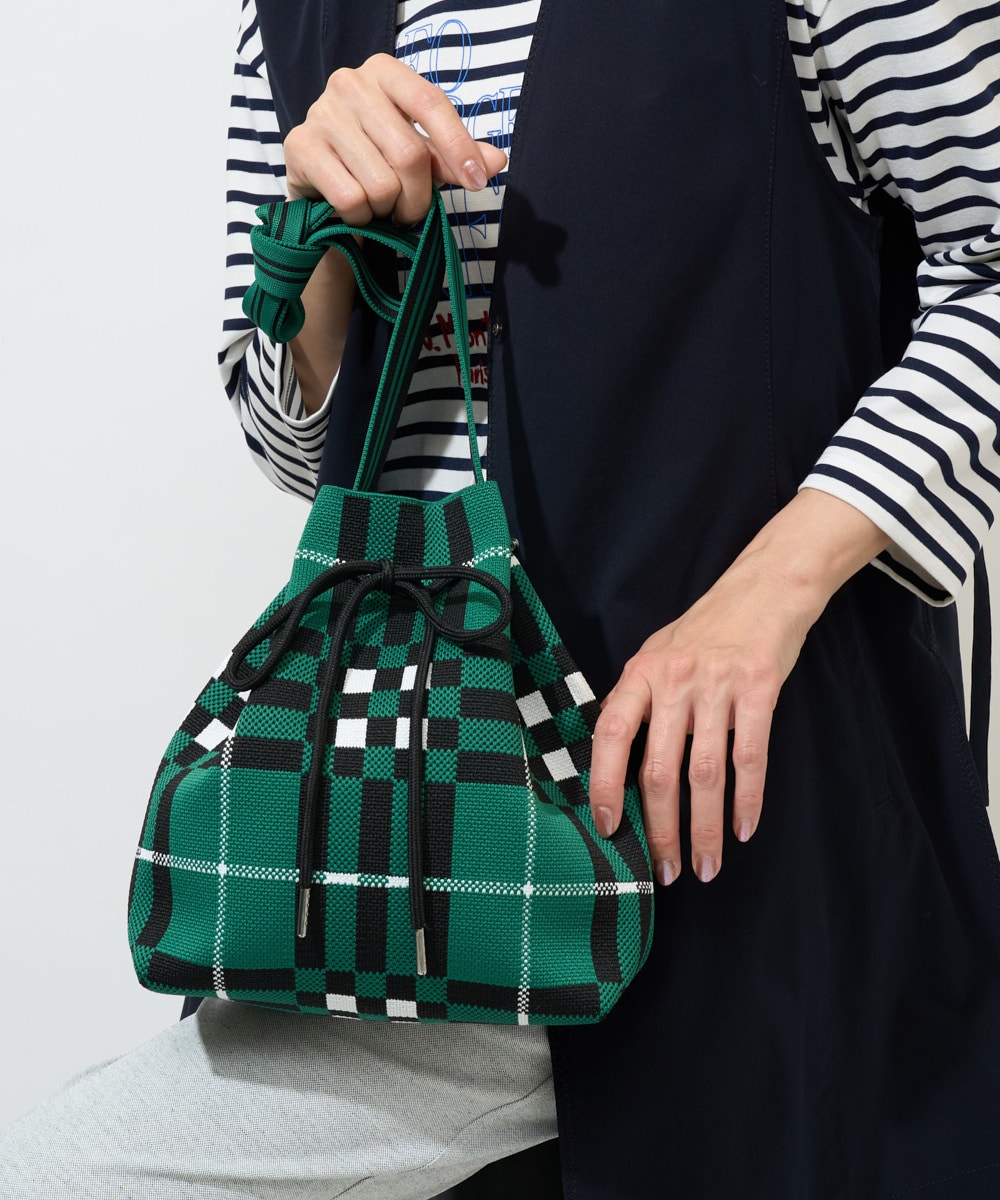 プリントのバッグをアクセントに。