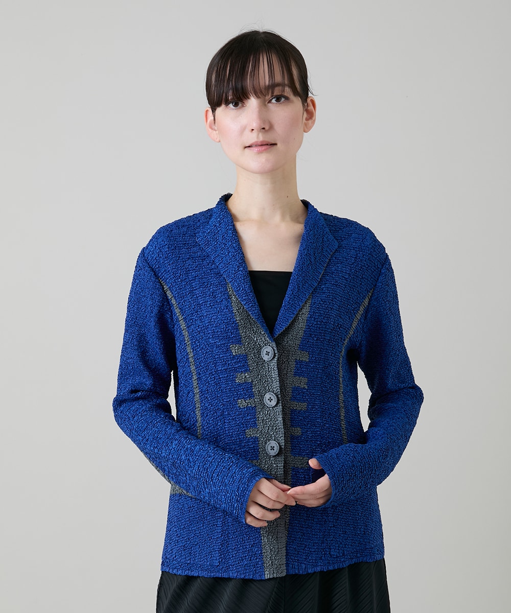特殊なプリーツ加工を施したジャケットはさっと羽織るだけでモードな印象を演出します。ストレッチ性、ドレープ性に加え、夏に嬉しい抗菌防臭の機能素材です。立体感と伸縮性があり身体の動きに合わせてフィットするので快適な着心地です。とても軽量でコンパクトにたたむことができるので旅行にもぴったりです。デニムを合わせたカジュアルなスタイリングもお勧めです。