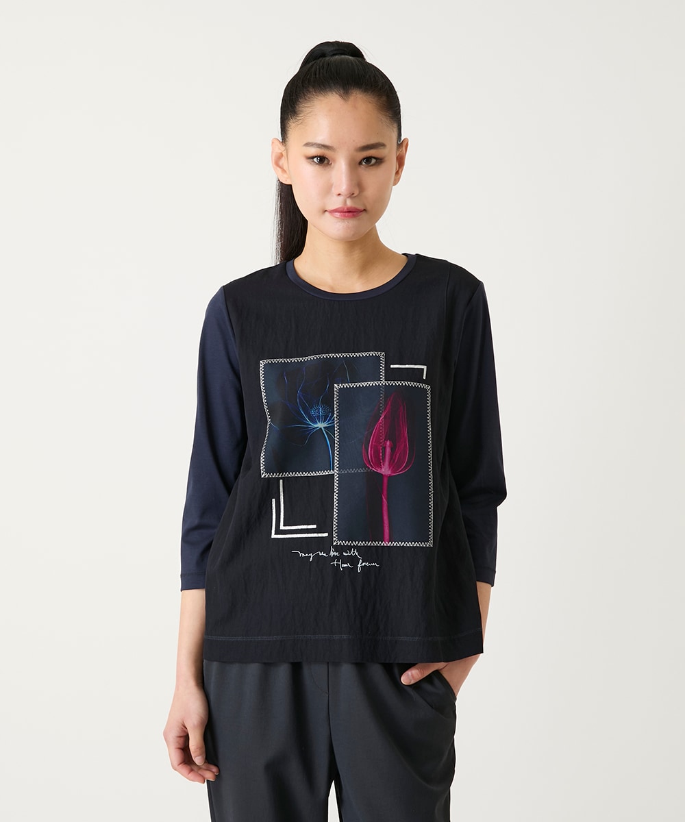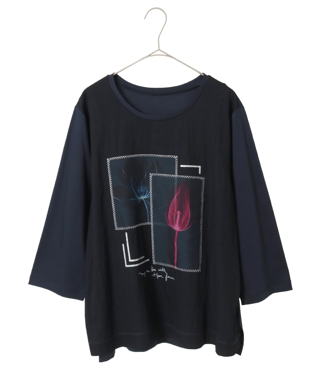【大きいサイズ】異素材ジョイントコラージュデザインカットソー