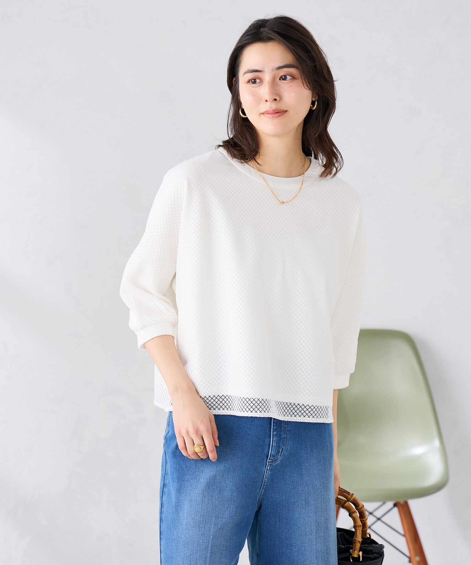 ・幾何レースドルマンカットソー
