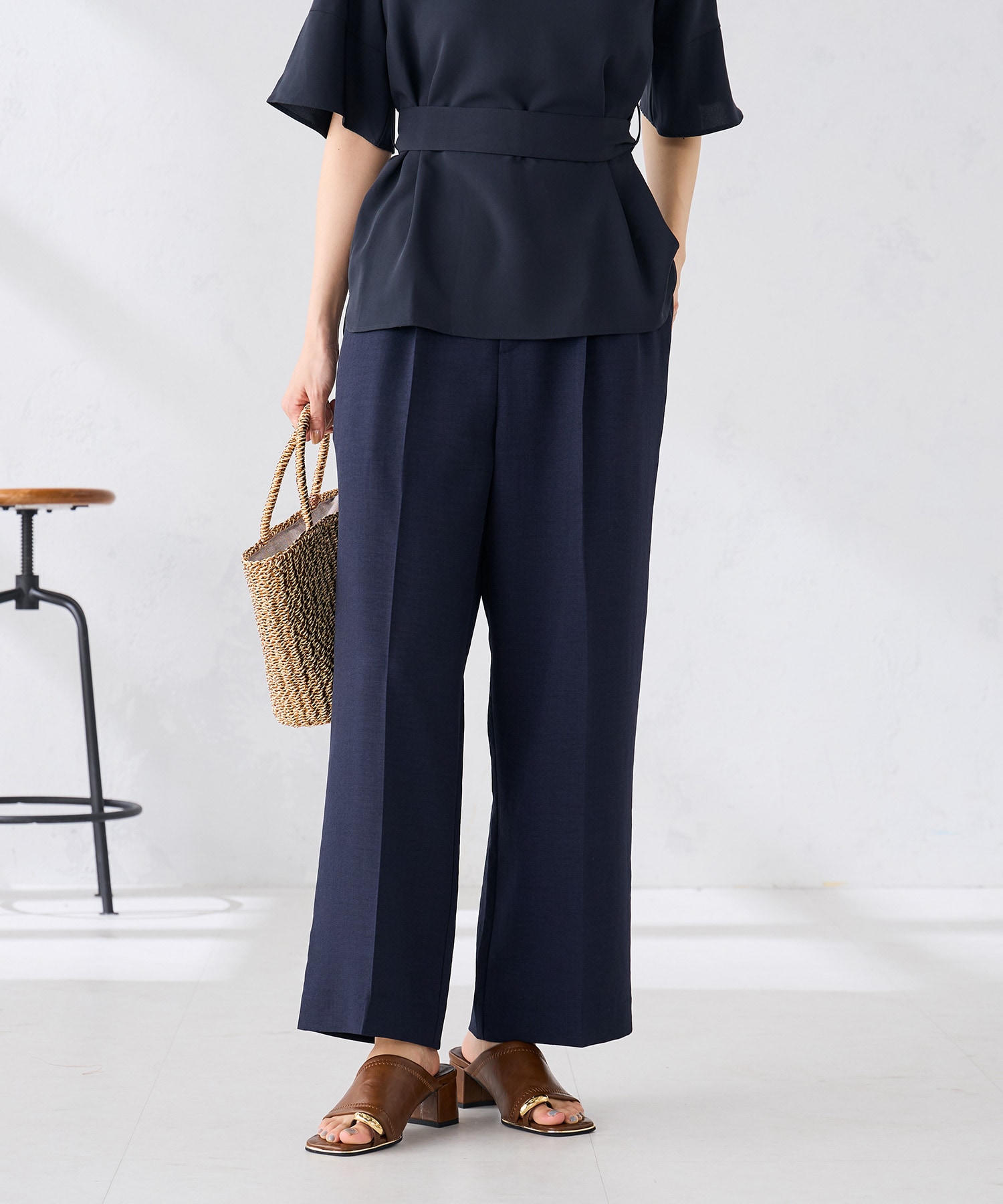・リネンライク2タックワイドパンツ