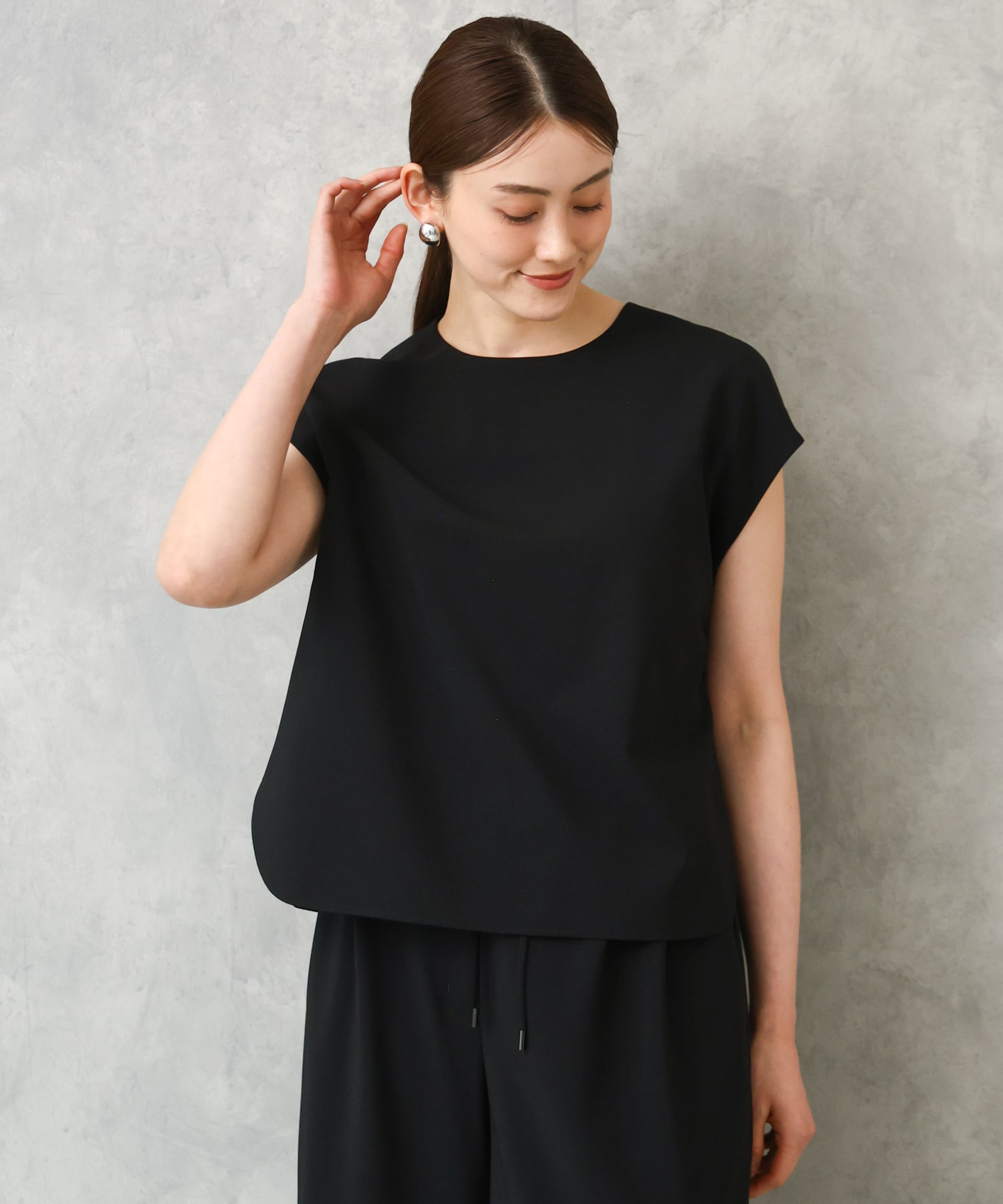 適度なハリ感ある素材を活かしたすっきりとしたシルエットで体のラインを