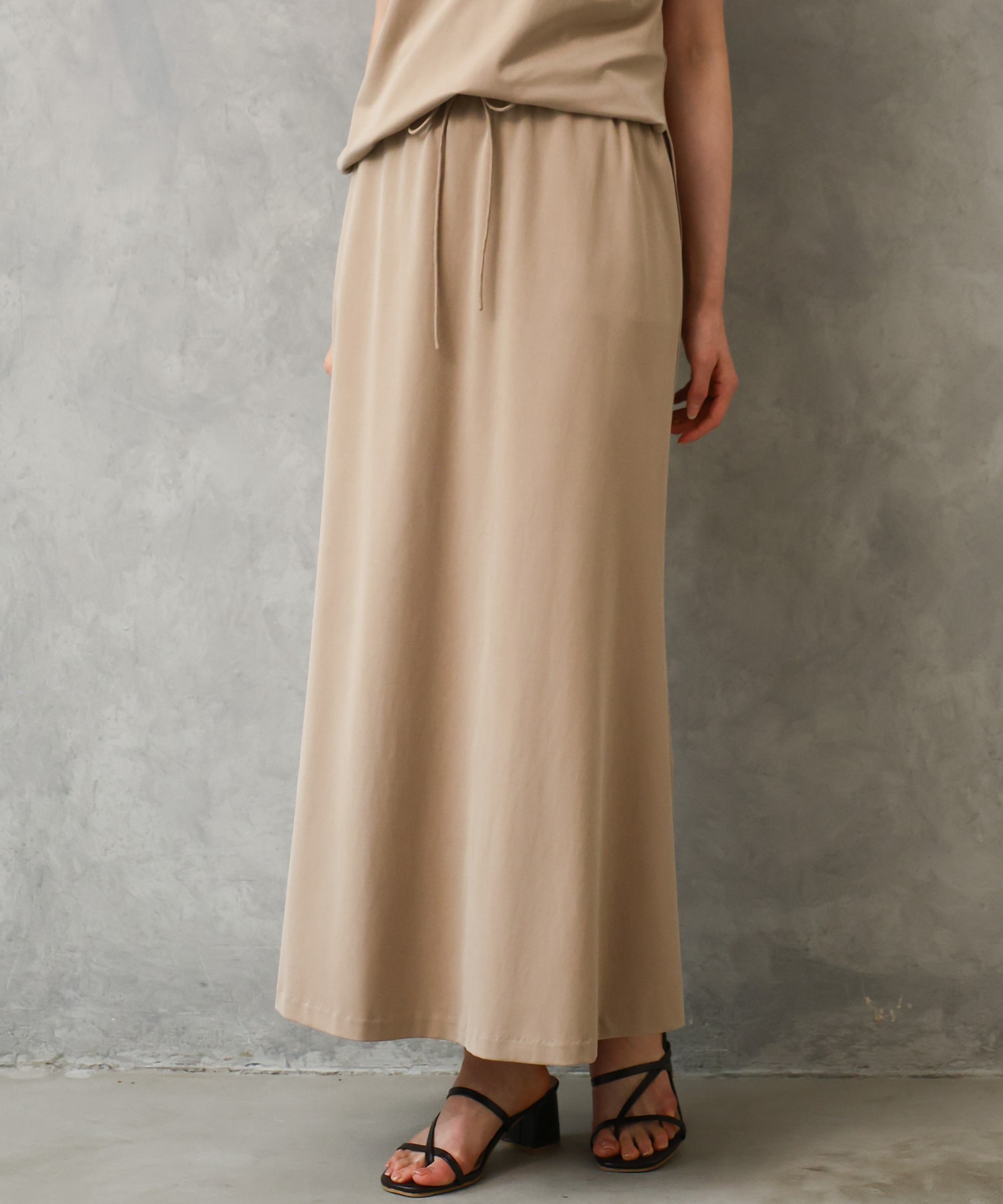 ウエストはイージーなゴム仕様裾にかけて広がるマーメイド風のシルエットで