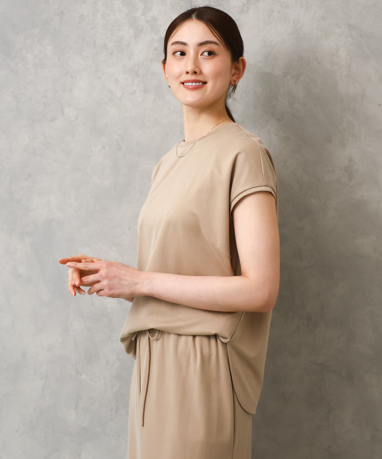 ジャージ素材でありながら女性らしいシルエットを演出してくれます