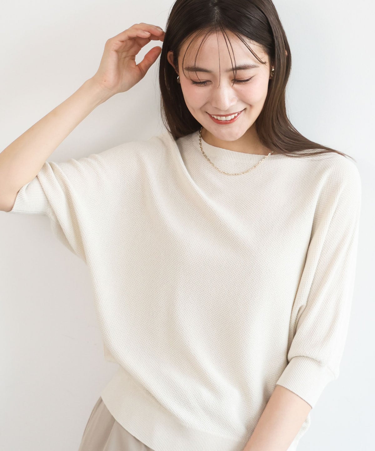 鹿の子編みでさらりとした着心地が魅力の素材です。UVカット機能付きで手洗い可能です。