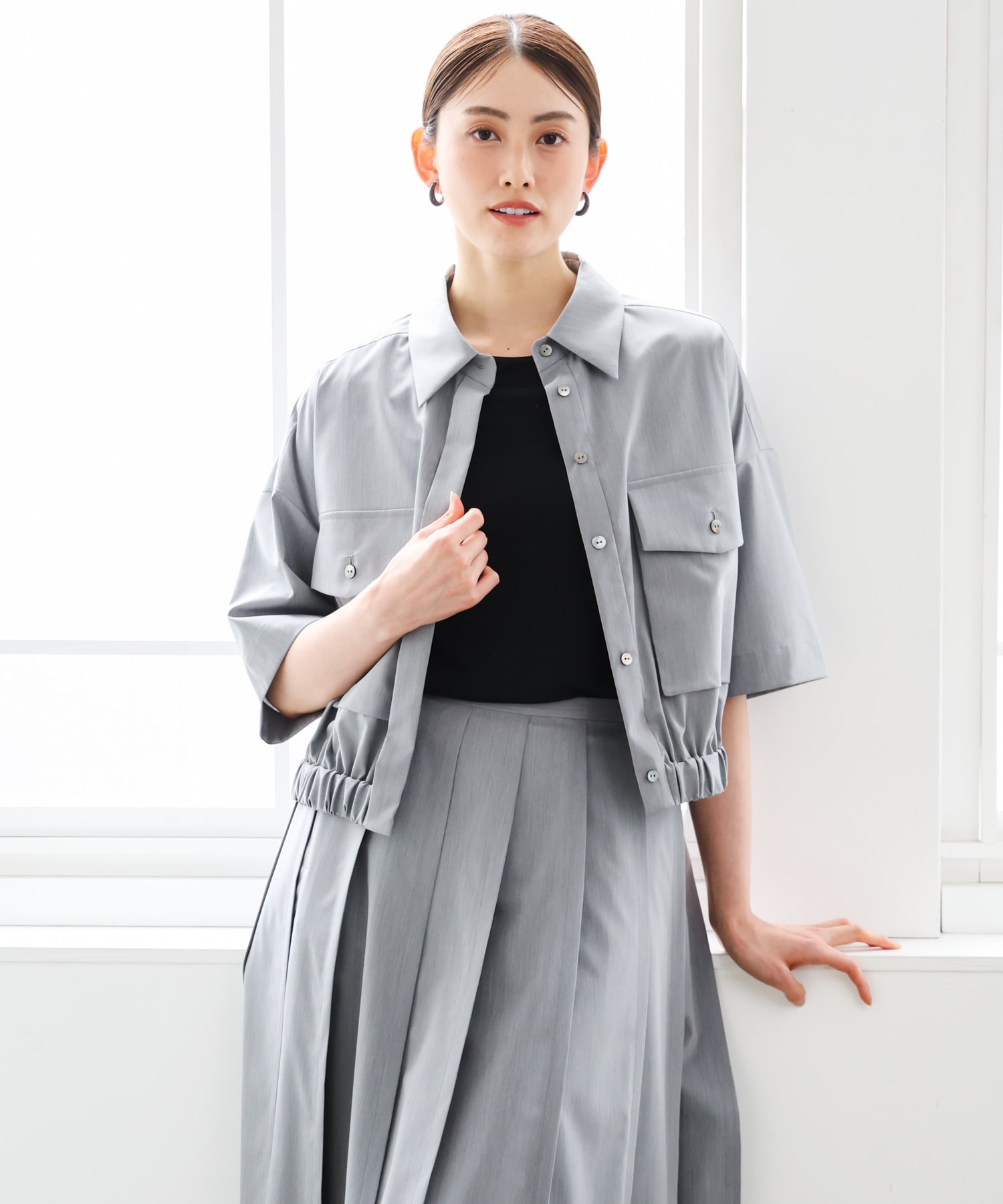 【 ニュアンスグレー × 黒で大人カジュアル 】