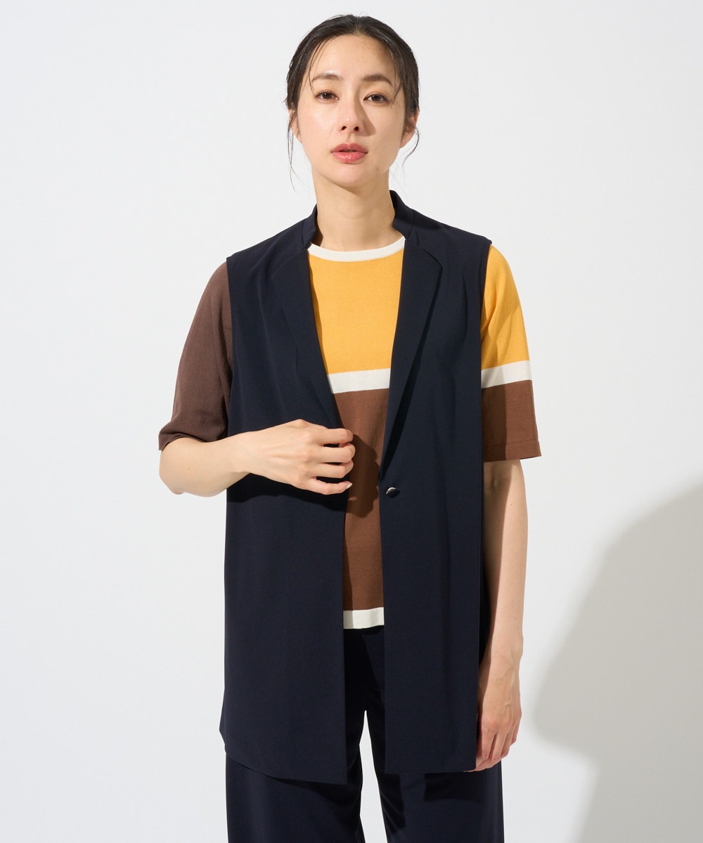 セットアップになるワイドストレートのパンツと合わせておくと通勤からご旅行まで幅広くお使いいただけます。
