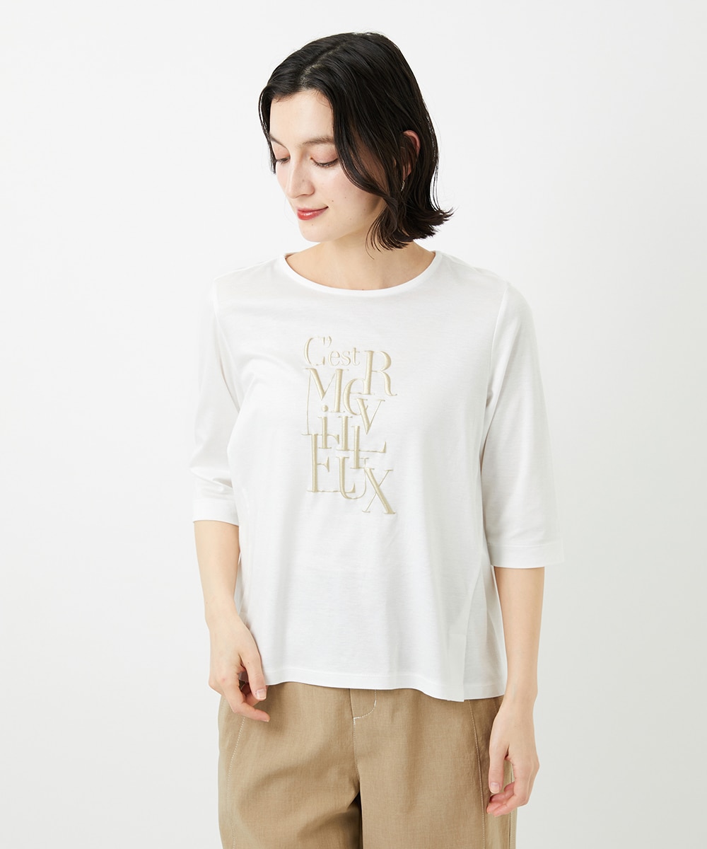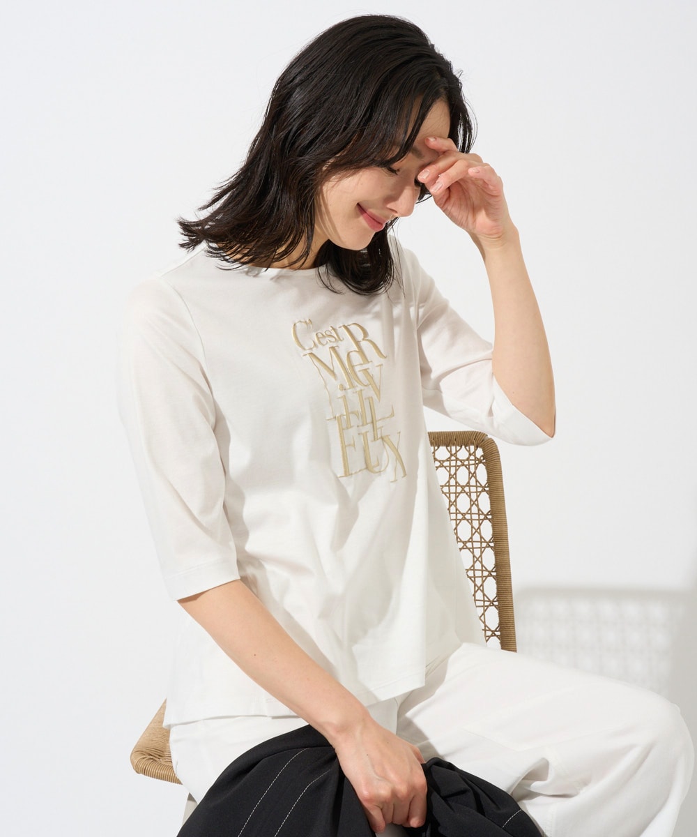 メタリックロゴプリント5部袖カットソーです。