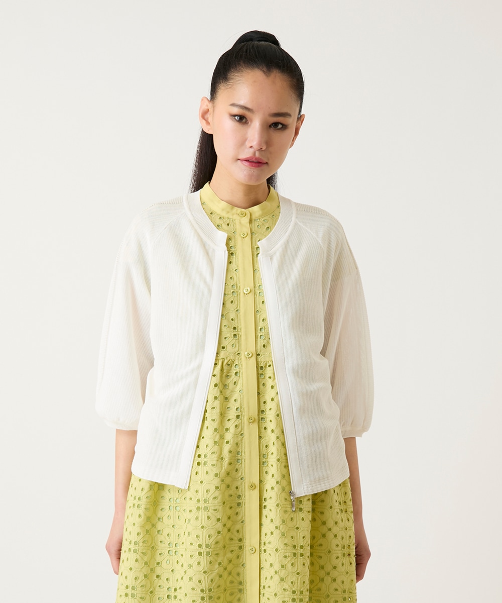 軽やかなリブポイントニットカーディガンは、ナイロンとコットンの絶妙な風合いで、清涼感と柔らかさを兼ね備え、カジュアルからきれいめまで自在にコーディネート可能。