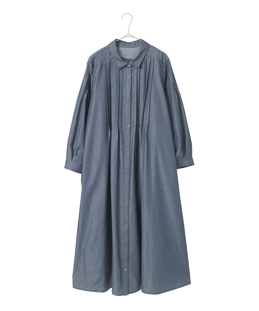 ピンタックデザインダンガリーワンピースは、シックなデニムカラーが品良く、大人かわいいスタイルに最適です。