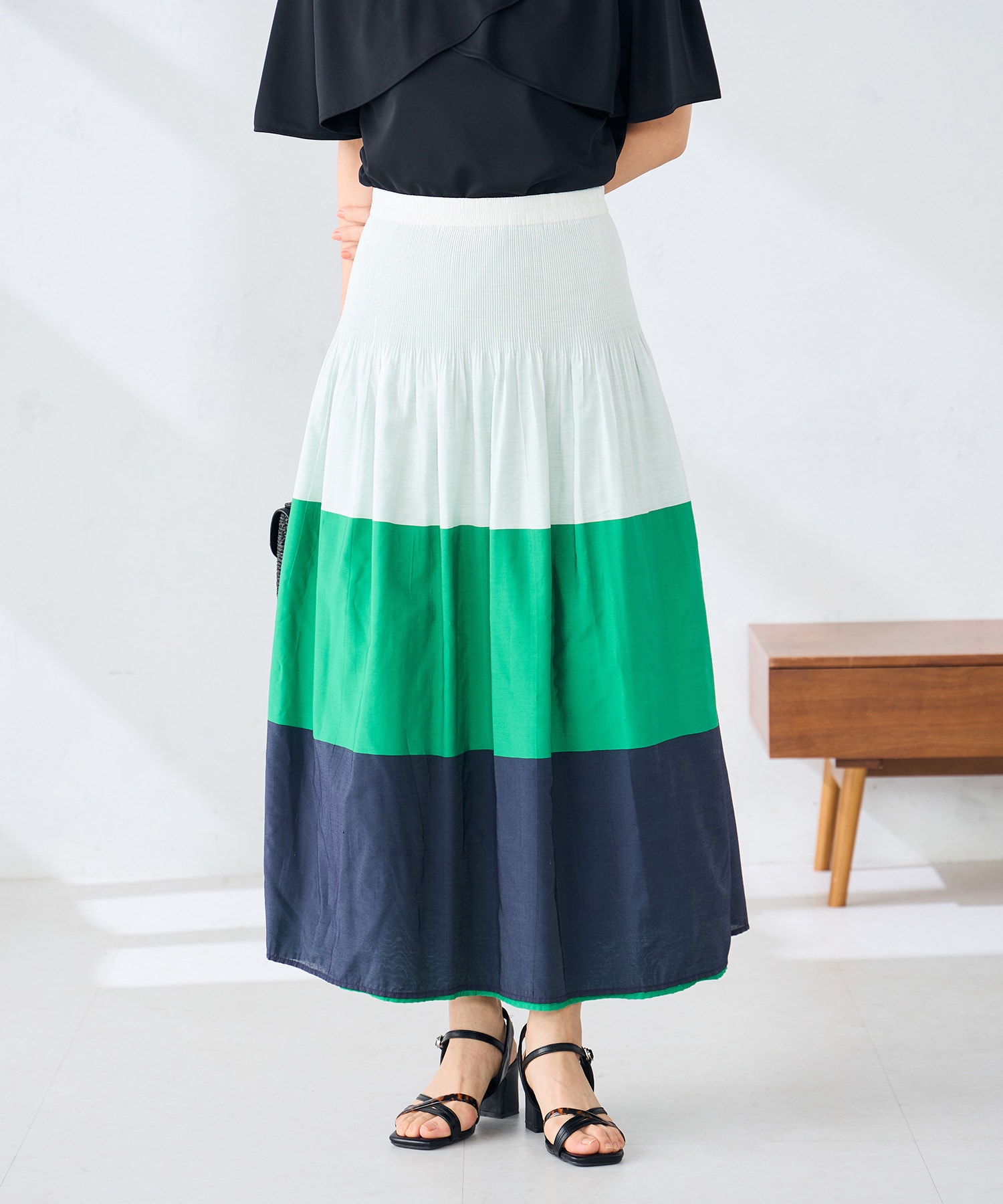 ウエスト~ヒップはゴムできゅっと締まっているのでメリハリがきいてスッキリ見え◎
