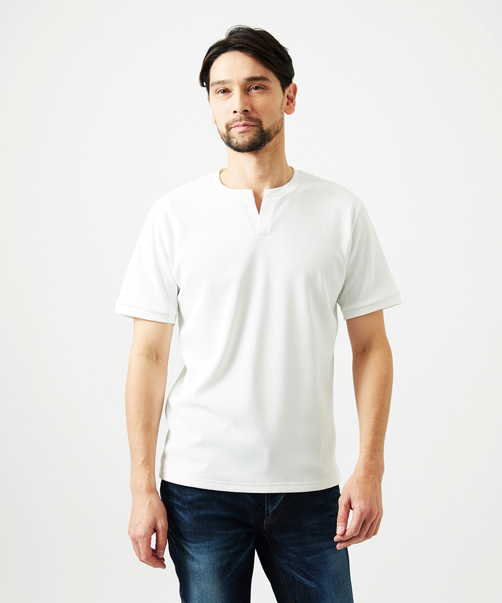 更にインナーをシャツやポロシャツ、スラックスと合わせる事で仕事モードの