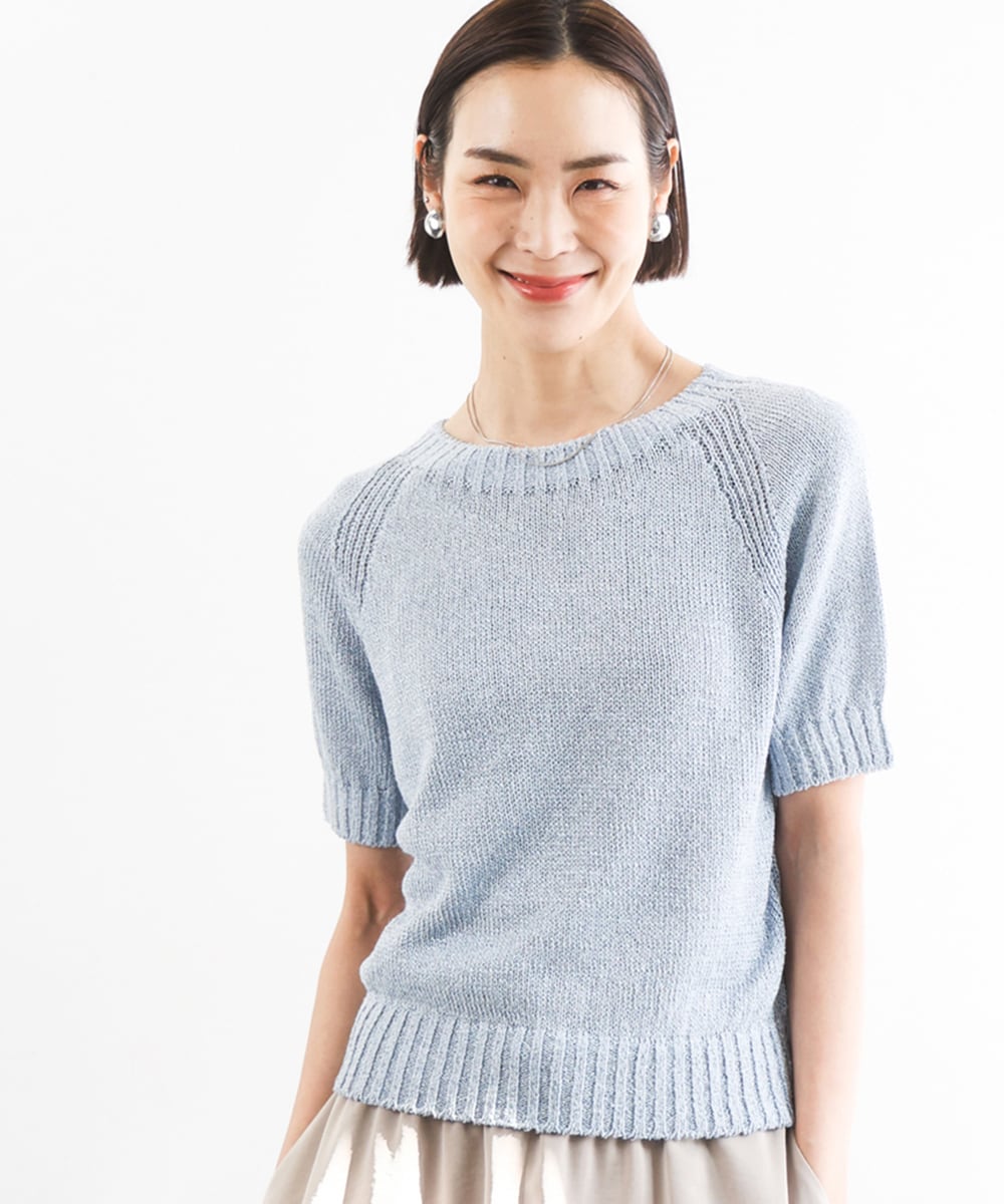 ドライタッチでさらっと軽い着心地と、ほんのり透け感が涼しげなニット。