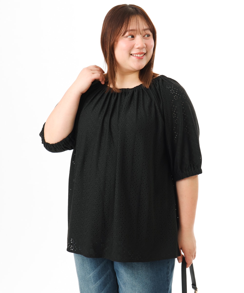甘さと抜け感をバランスよく取り入れた、大人のためのアイレットトップス。