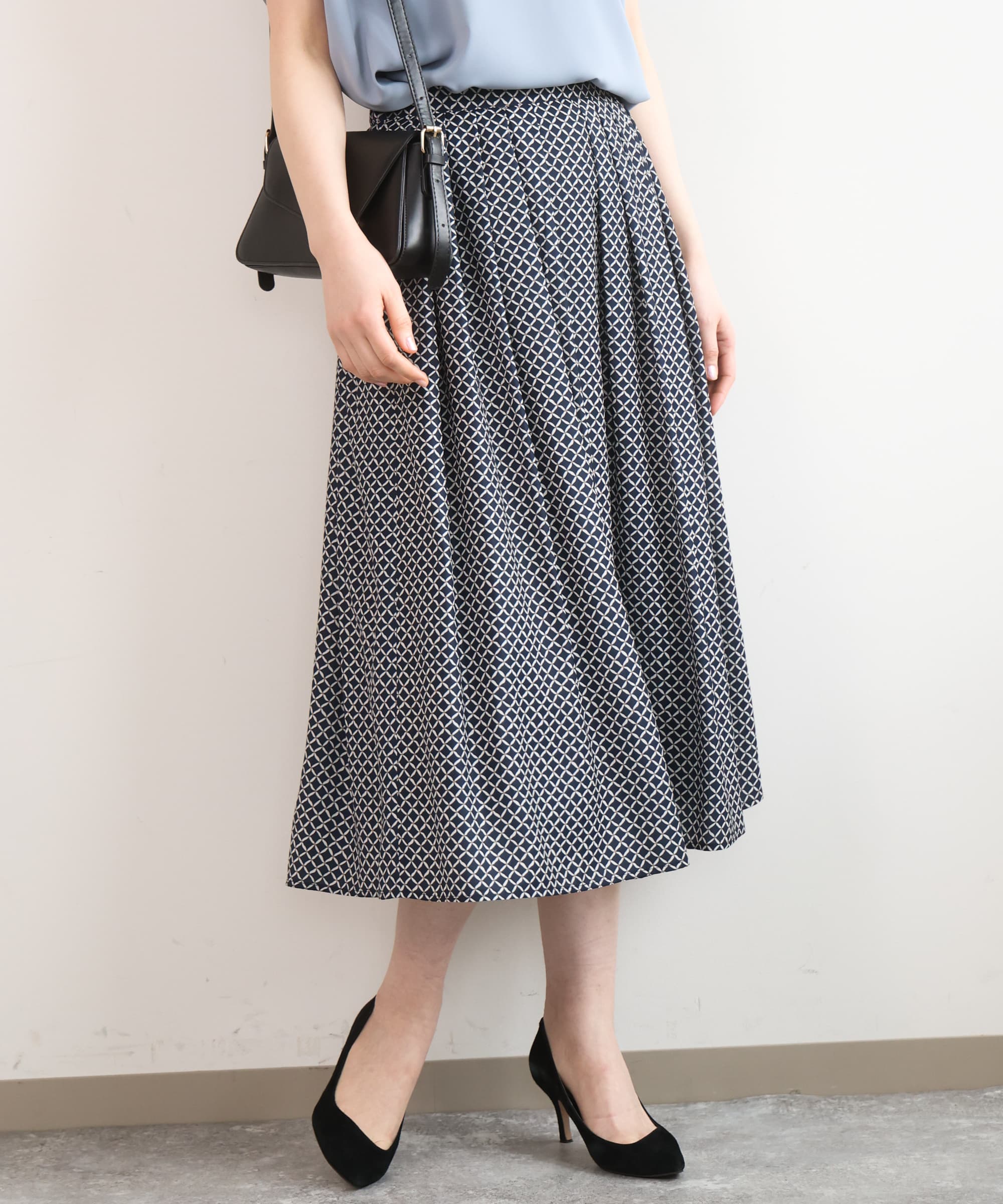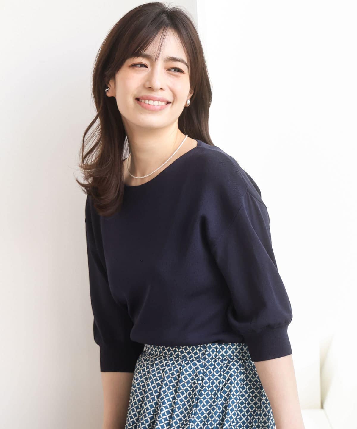 色もネイビーベースなのでトップスはあらゆる色に合わせられます〇