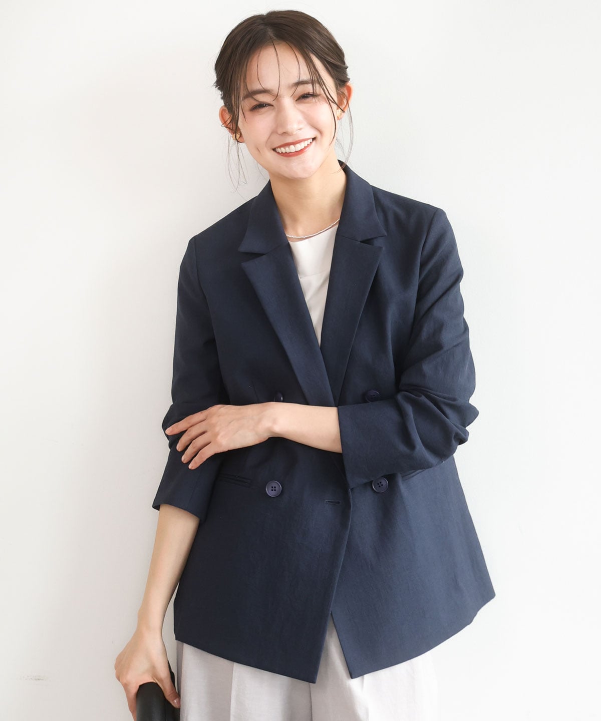 汗ばむ季節も快適に着られる接触冷感やUVカットの機能が付いたジャケット。
