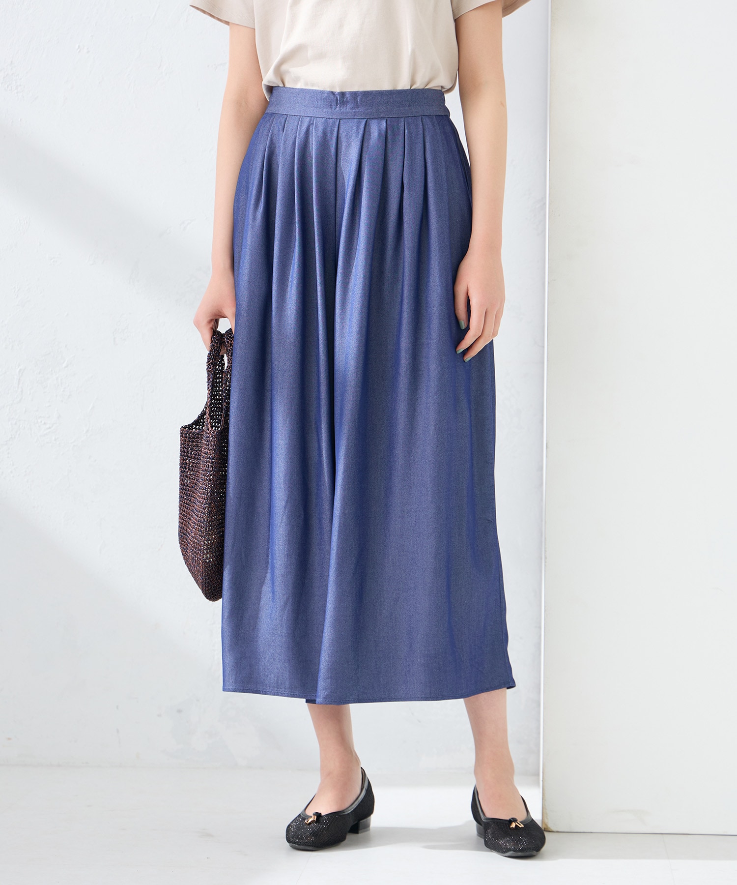 ウエストフロントはすっきり、後ろゴムギャザーでイージーな履き心地です