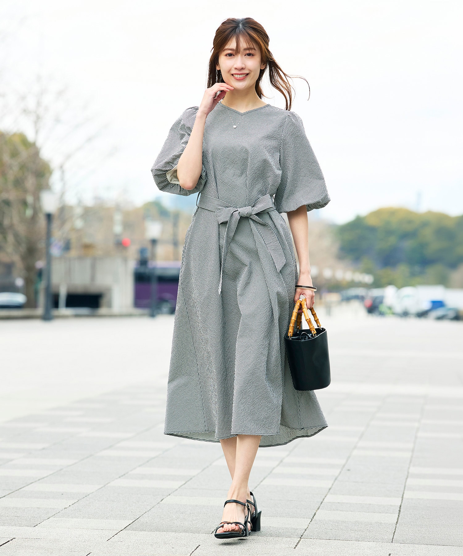 パフスリーブのふんわりとしたシルエットが華やかな印象のワンピース