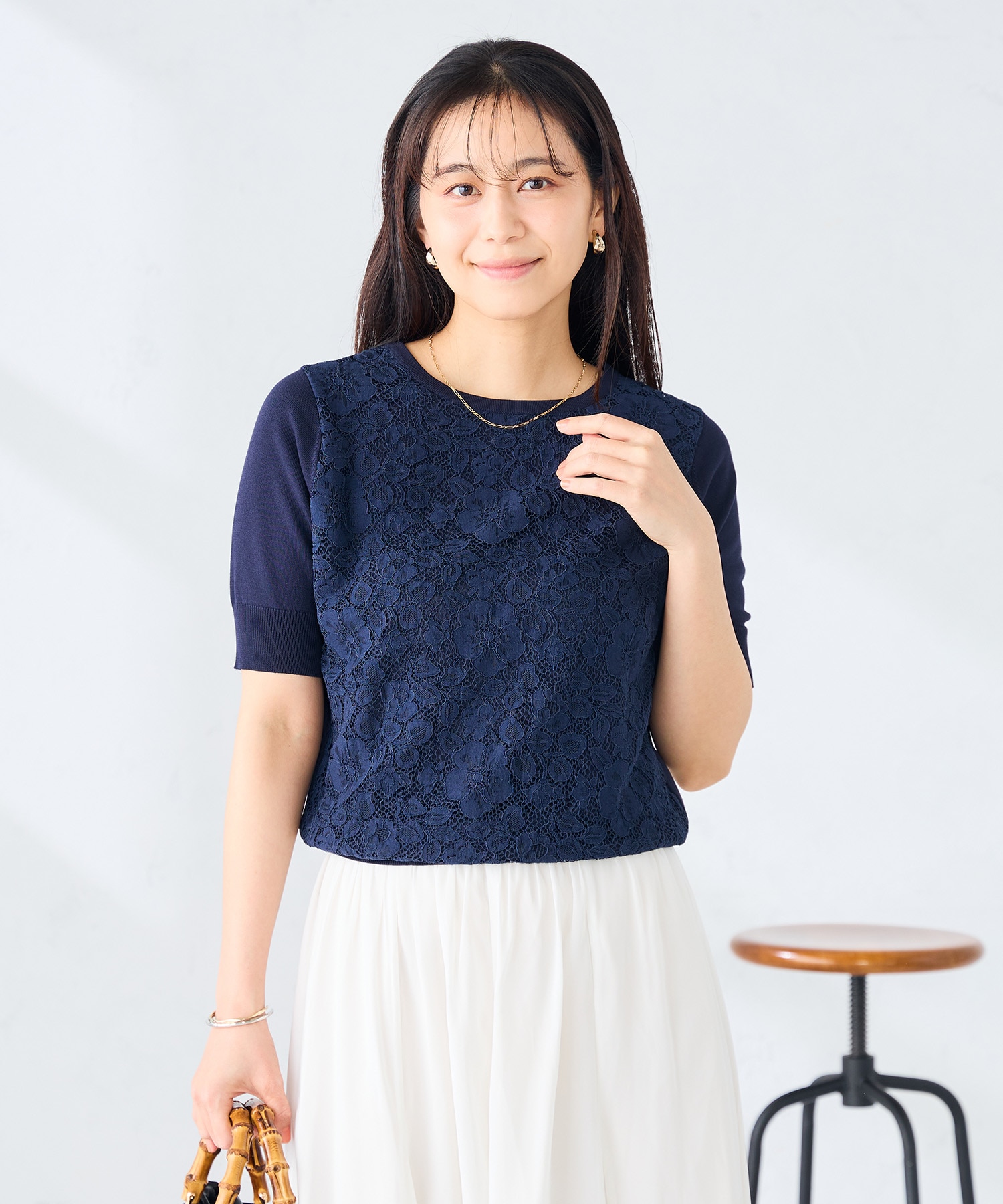 この繊細なレース、近くで見れば見るほど惚れ惚れします。プリントではなく、しっかりとした厚みと凹凸感のあるレースを使用しているので、着るだけでクラス感がアップ!
