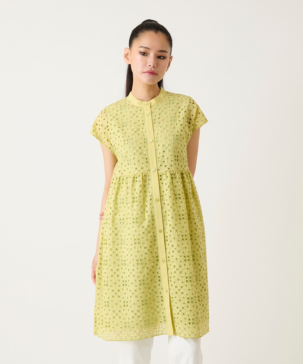 ◆ アイレット刺繍フレンチスリーブチュニックブラウス