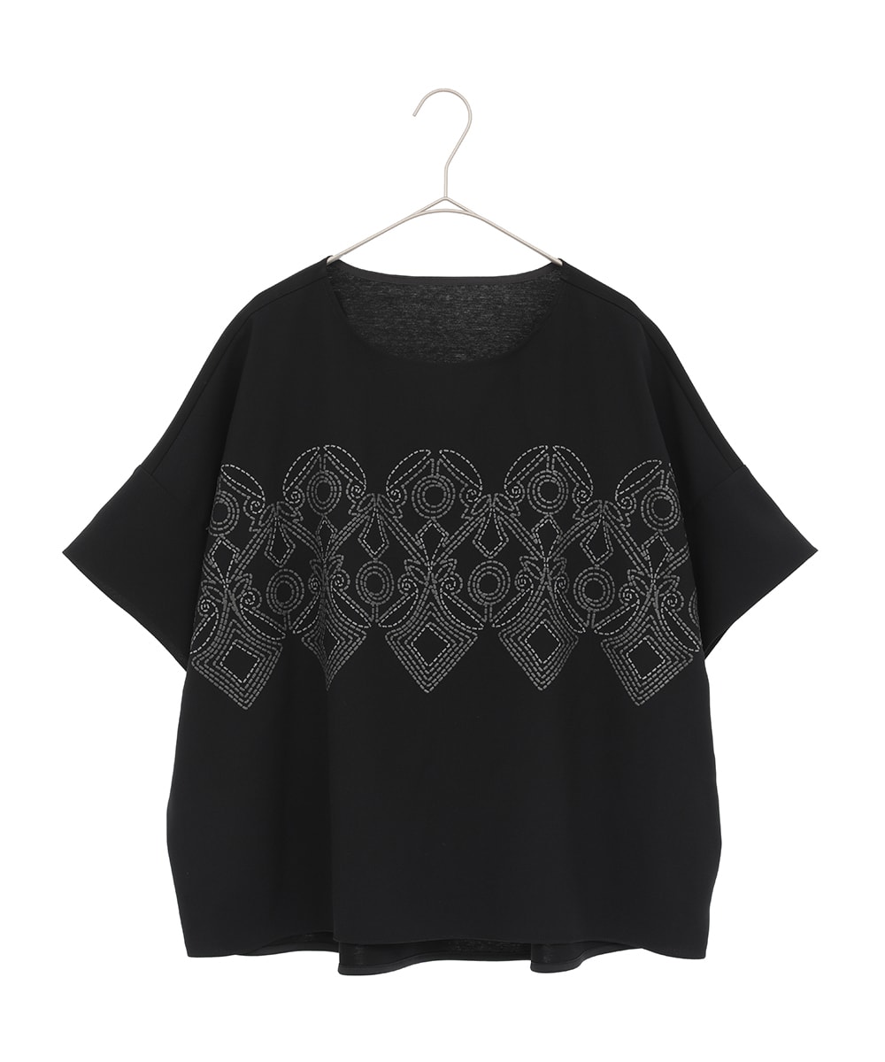幾何柄プリントはラメや発泡プリントでアクセントを加え、大人かわいい印象に。