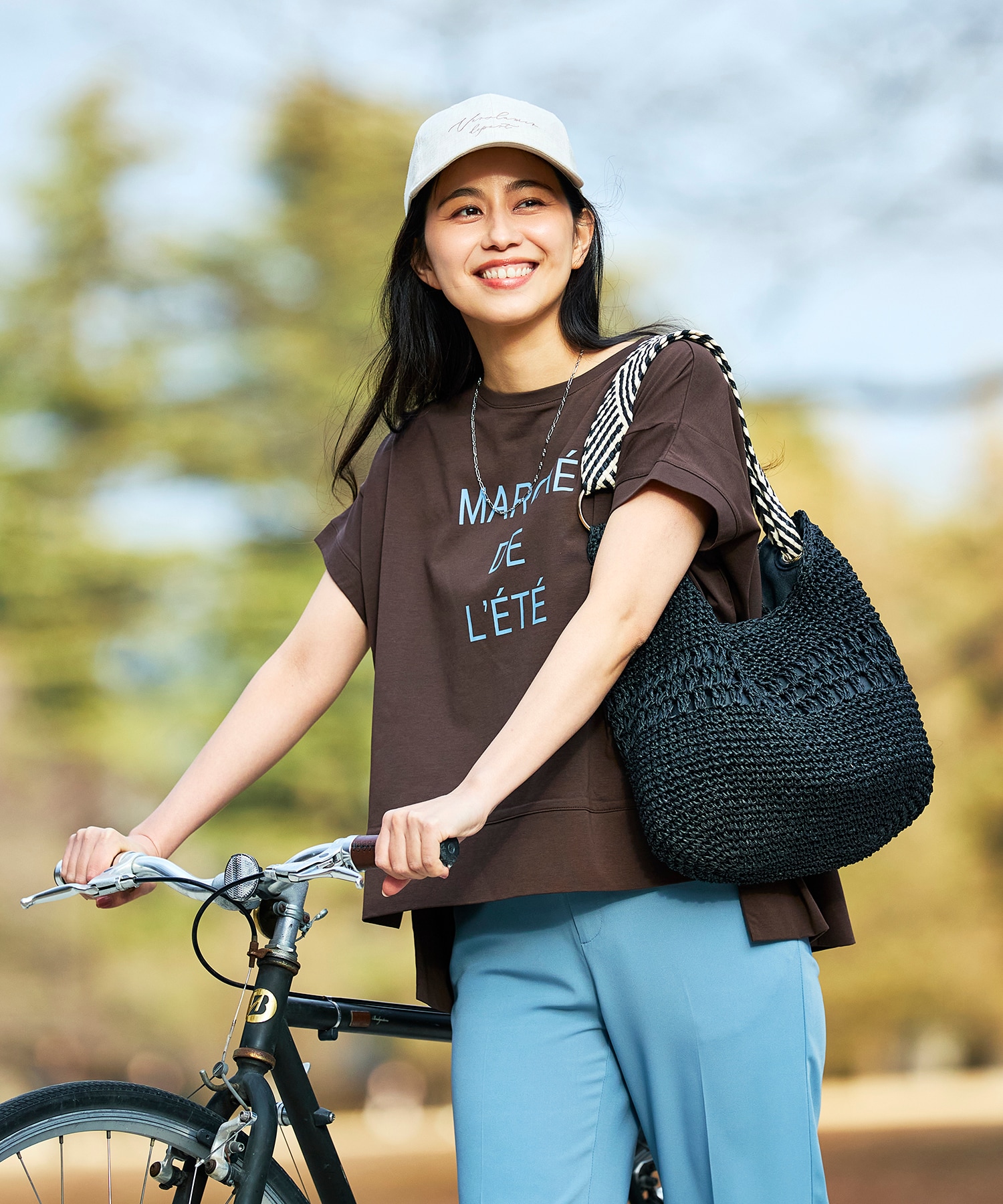 ブラウスや、サマーニット、ロゴトップスとも相性抜群。春夏秋と長い期間着用可能。