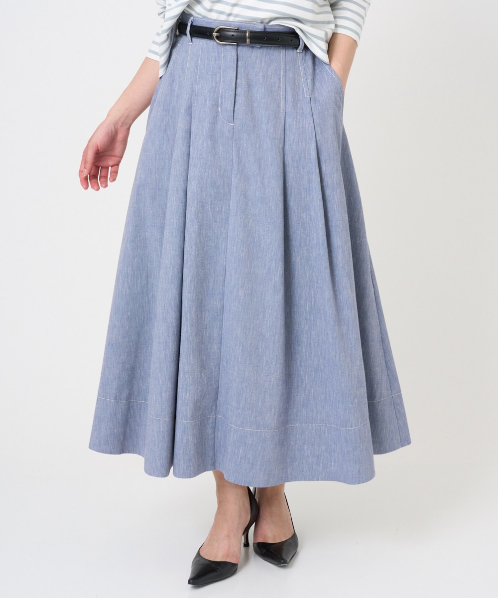 デニムライクなシャンブレーAラインスカート。