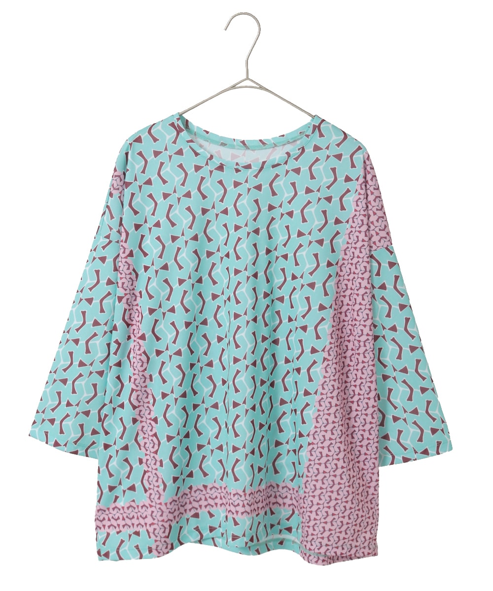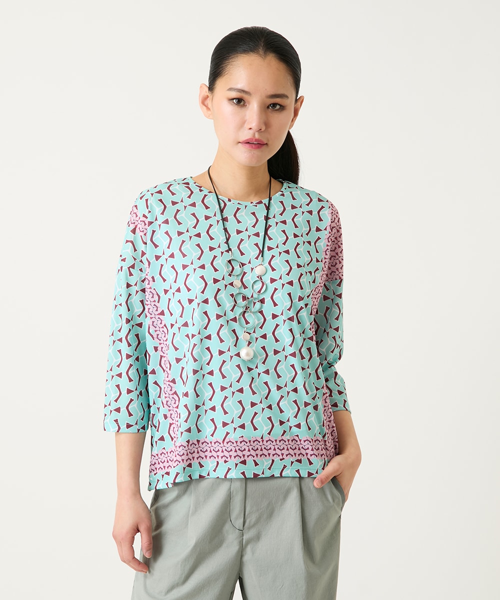 インナーの幾何柄のカットソーは