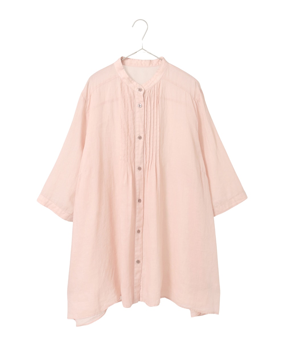 ピンクの麻ブラウスを