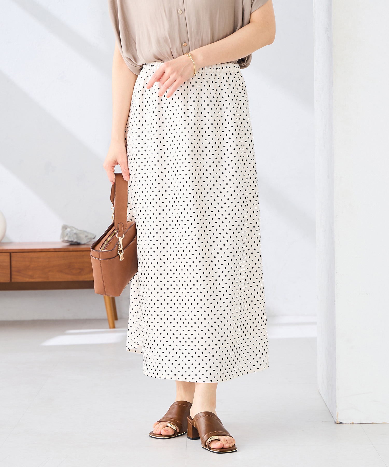ドットスカートのカジュアルコーディネート