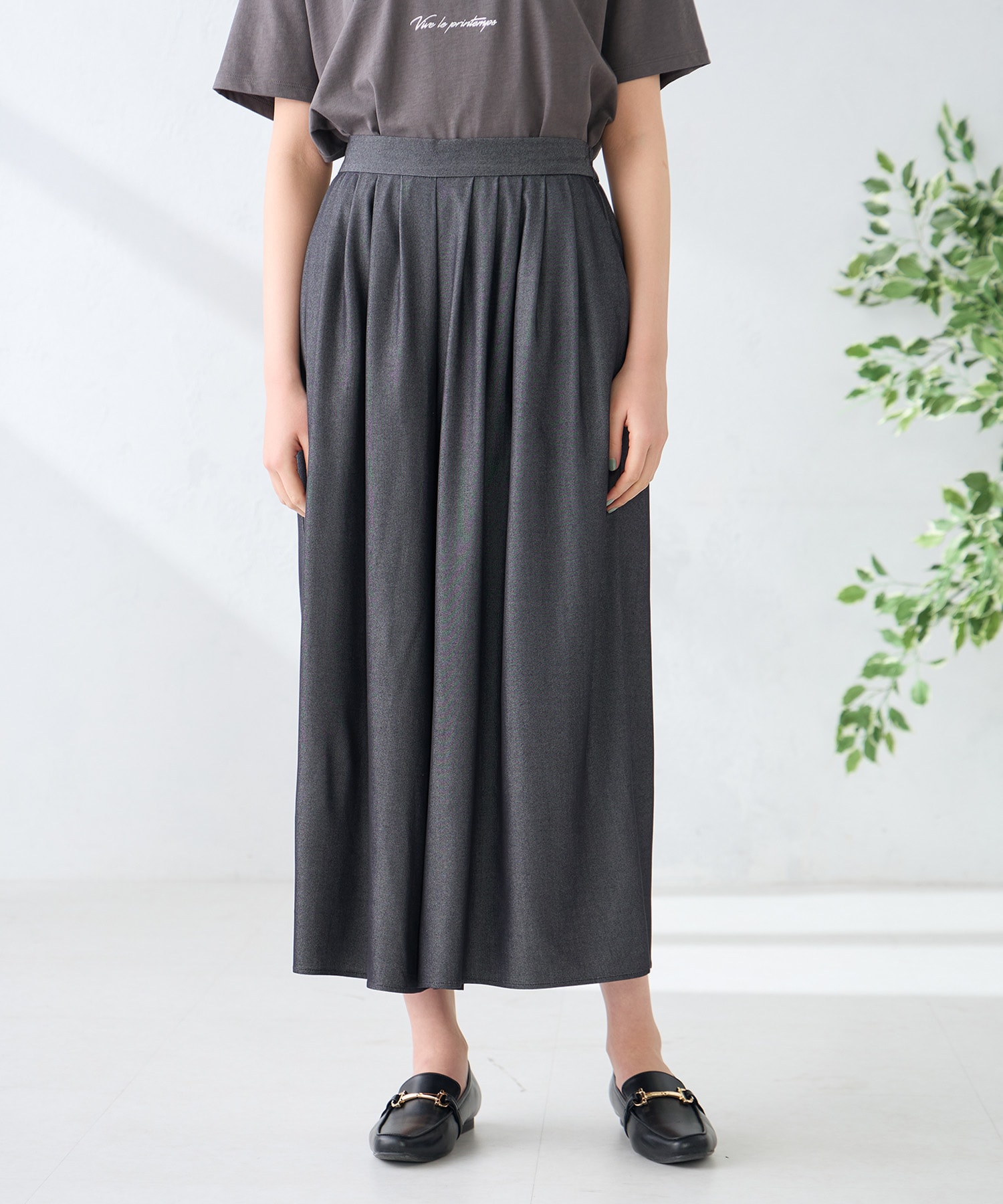 軽くて柔らかく穿き心地抜群、広がりすぎずスッキリしたスカート見えシルエットのパンツ。
