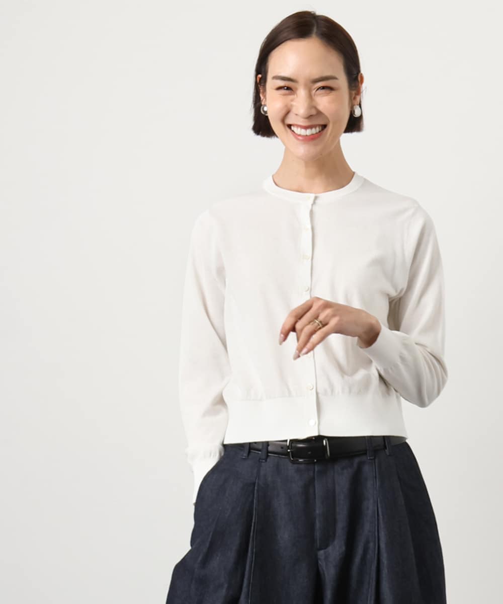 綿ならではのやさしい肌触りと、上品でナチュラルな風合いが魅力的なシアーカーディガンです。
