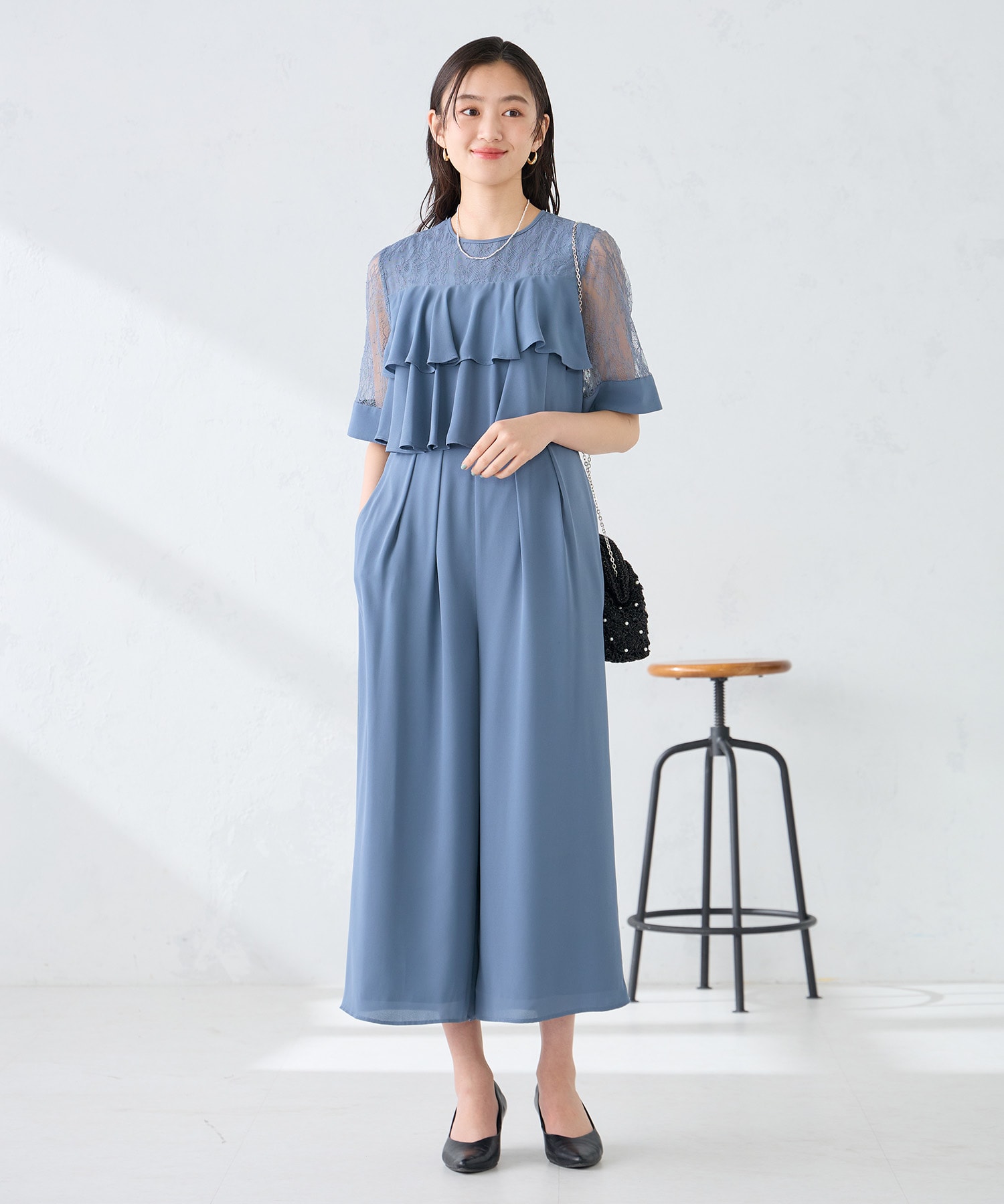 【結婚式/お呼ばれに】ラッフルティアードオールインワンドレス
