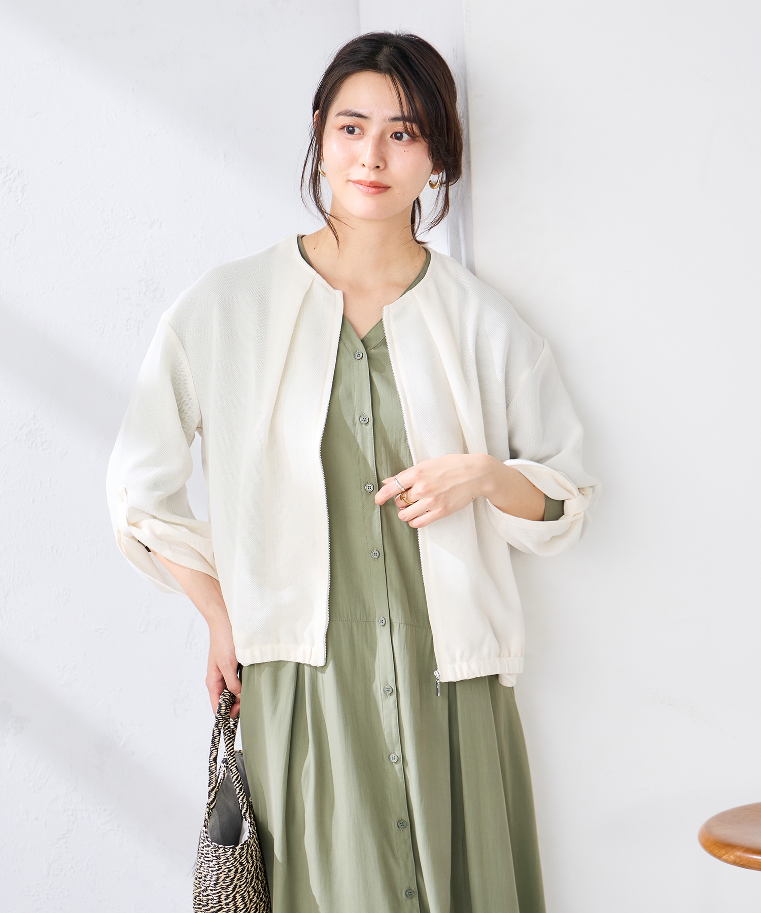 羽織りのメッシュブルゾンは重ね着するのに最適!